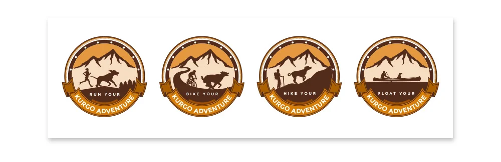 The design of the logo was based on old Girl Scout and Boy Scout badges, and National Park WPA posters. I illustrated the logo to show adventurous people and their dogs outdoors, and as an illustration it was easy to carry the logo design into creating the rest of the collateral. In addition, I created four other badges to tie into the logo that illustrate four categories of adventure that people can go on with their dogs: Running, Hiking/Climbing, Canoeing/Boating, and Biking.