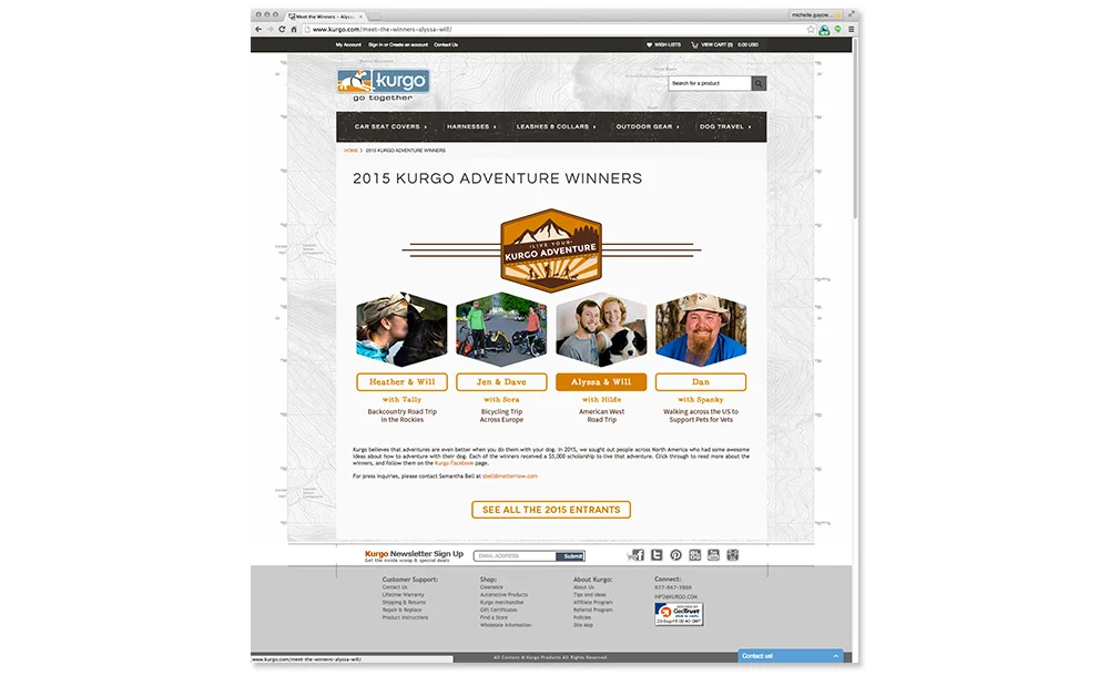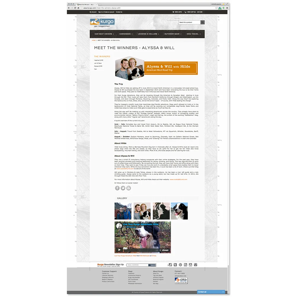 I designed and coded this mini site using HTML and CSS (via Big Commerce) on our existing Kurgo website to introduce the four winners. I designed the website under the direction of the Creative Director and within the established branding for the contest. Check it out live here.