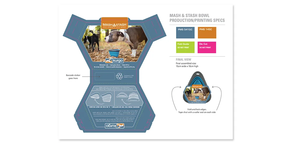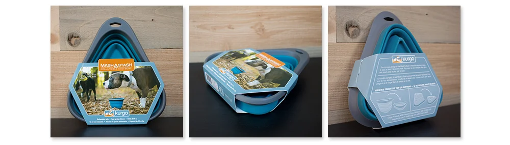 The Mash & Stash dog bowl is a 2015 new product for Kurgo, and it needed a modern, clean packaging solution. I designed this packaging to hug the product, utilizing the design of the product in the packaging (hole for clipping doubles as a hanger for product display in-store).